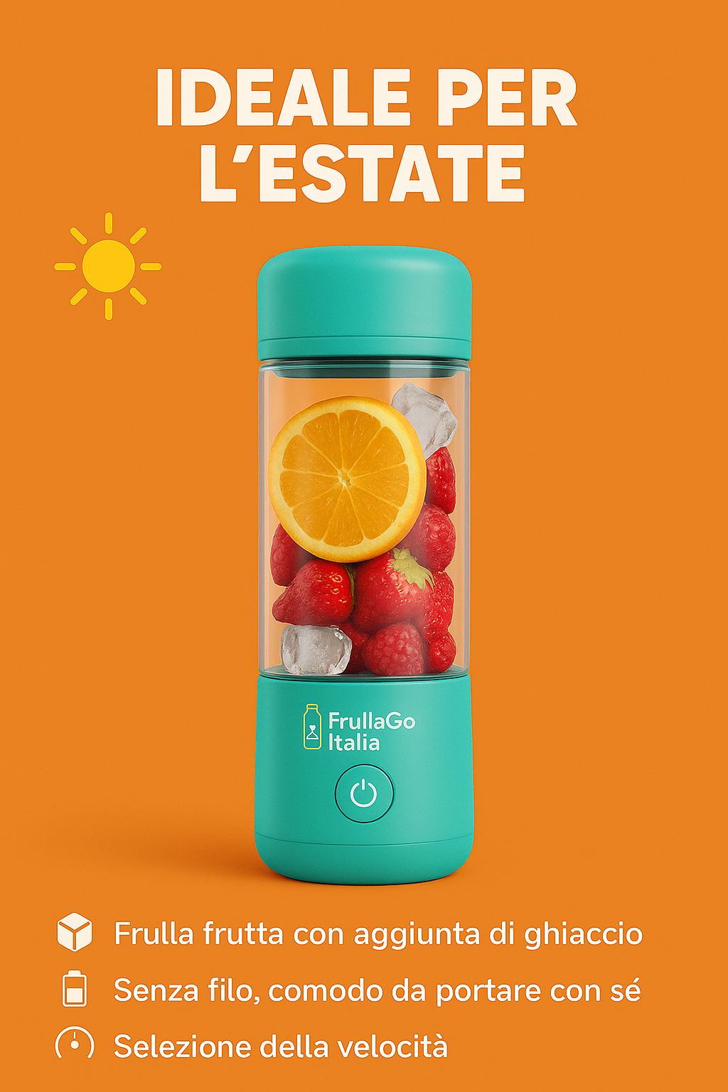 Scopri FrullaGoItalia™, il frullatore portatile intelligente che trasforma ogni momento in un'occasione per gustare frullati freschi, ovunque tu sia.